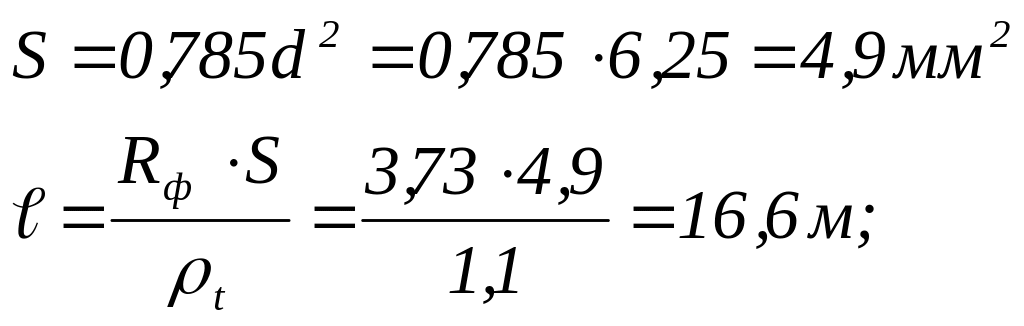 8. Зная Rф, ρt=1,1 мм2/м и S нагревателя, находим длину