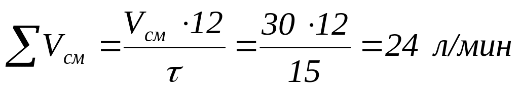 Из номограммы находим расход воды с температурой 850С 7 л/мин, воды с температурой 150С – 17 л/мин. Таким образом расход горячей воды составляет 7 л/мин или 420 л/час.