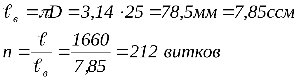 h – шаг намотки выбираем 7 мм (расстояние между витками 1,8d=1,8∙2,5=4,5мм)