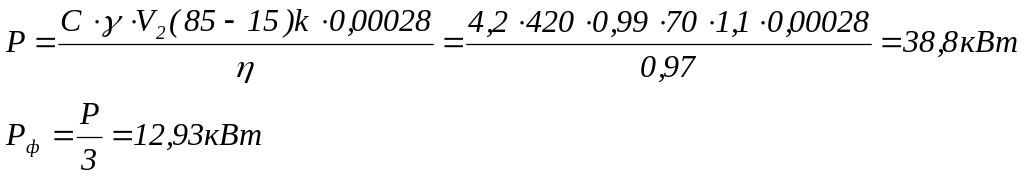 Электрическая мощность, потребляемая из сети Р= 0,00028∙к ∙ Qобщ , кВт.