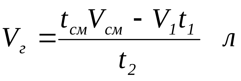 V1 – объем холодной воды, необходимый для того, чтобы получить требуемую температуру смеси, л;