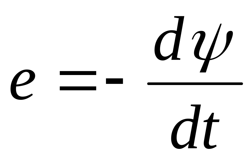 Электродвижущая сила е , наводимая в проводнике или контуре, пропорциональна скорости изменения магнитного потока Ф , пронизывающего этот проводник или контур, взятой со знаком минус