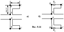 На Рис.9.9 внутрь волновода вставляется ферритовая пластина, в результате которой волны высших типов не проходят. Эквивалентные схемы на Рис.9.9(в,г)
