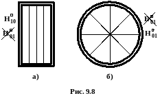 9.8(ф) – для прямоугольного. Вдоль широкой стенки(параллельно) стоят пластины. Иногда эти пластины покрываются радиопоглощающим покрытием и та волна, которая нам не нужна поглощается и отводится в виде тепла.