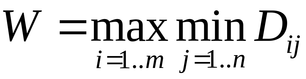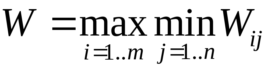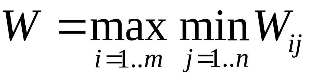 Критерий Вальда (критерий наибольшей осторожности/ пессимиста). Для каждого из рассматриваемых вариантов решения Xi выбирается самая худшая ситуация (наименьшее из Wij) и среди них отыскивается гарантированный максимальный эффект: