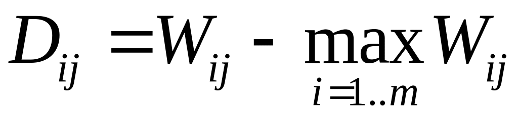 Выполнив несложные расчеты, заполним матрицу полезности {Wij}:
