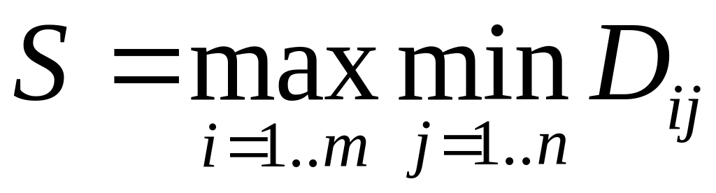 по матрице D выбирается решение по пессимистическому критерию Вальда, дающее наименьшее значение максимального сожаления