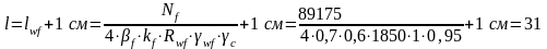 Требуемая длина сварного шва крепления вертикального ребра к стенке траверсы исходя из приварки четырьмя швами определяется по формуле