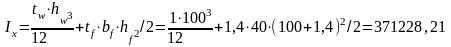 Jx= Jx1+Ab1*yb12+ Jx2+Ab2*yb22=13380+61,9*56,642+10820+53,4*612=421482,2см4