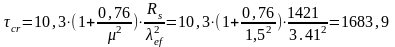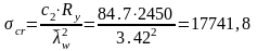- расчет на устойчивость стенок балок симметричного сечения, укрепленных только поперечными основными ребрами жесткости, при наличии местного напряжения следует выполнять по формуле