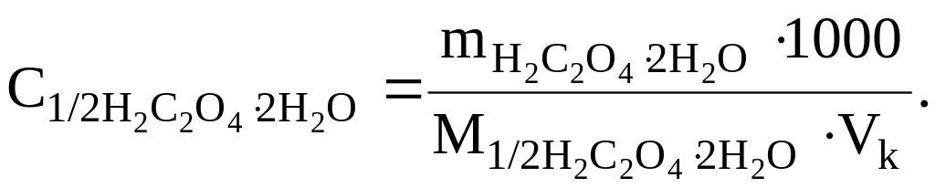 Величина навески щавелевой кислоты определяется вместимостью мерной колбы.