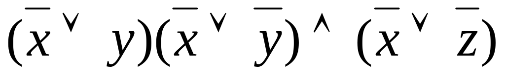 1. f(x, y, z) = (x V y) (z х) 2. f(x, y, z) = (x | y) (x z) 3. f(x, y, z) = xy (y z) 4. f(x, y, z) = xy zx 5. f(x, y, z) = (x y) (x V z x) 6. f(x, y, z) = (x y) V (z ~ x) 7. f(x, y, z) = (x V z) (x y) 8. f(x, y, z) = (z y) (x y) 9. f(x, y, z) = (x y) ~ (z x) 10.f(x, y, z) = (x ~ y) V (x z) |