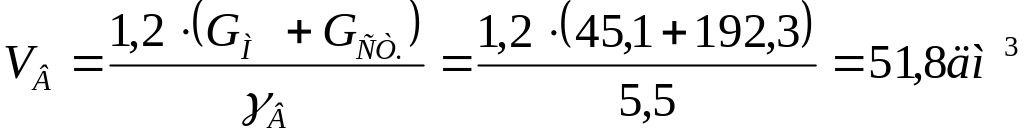 где В = 5,5 кг/дм3 – средний удельный вес выемной части.