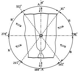 Степень 2С – центральный луч УЗ пучка пересекает каждый элемент металла хотя бы в одном направлении, проходящем через секторы Б или Б, В или В.