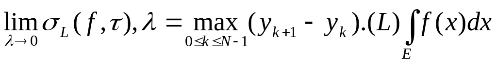 Построим интегр. сумму L(f,)=yk(Ek), k=0..N, где - мера Лебега на числ. пр-й.