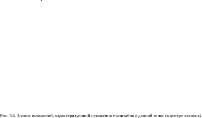 Значення т, п, а, Ь и р измеряют в процентах или в долях от главного масштаба. Например, если а = 1,12, то зто означает, что частньїй масштаб по направленню большой оси зллипса искажений составляет 1,12 (или 112%) от главного масштаба. Иногда в качестве показателей искажений используют их отклонения от еди-ницьі: /я — 1, л — 1, а - І, Ь - І ир — І— зти показатели назьіва-ют относительньїми искажениями. Если, например, а — 1 =0,12, то зто значит, что частньїй масштаб вдоль большой оси зллипса искажений преувеличен относительно главного масштаба на 0,12 (или на 12%). Частньїй масштаб может оказаться и меньше главного, например Ь =0,85 (85%), т.е. масштаб преуменьшен на 0,15 (на 15%).