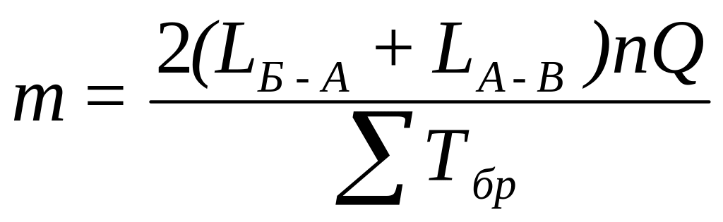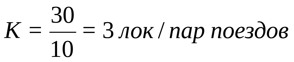 Коэффициент потребности локомотивов (количество локомотивов, требуемое для обслуживания одной пары поездов) определяется по формуле: