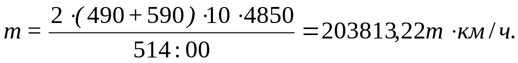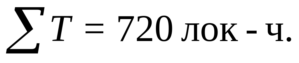 Работа локомотивов, лок.-ч, определяется на основании ведомостей работы локомотивов на заданных участках. Подсчитаем время в часах, которое затрачивается локомотивами на обслуживание всех поездов, предусмотренных графиком на участке обращения: