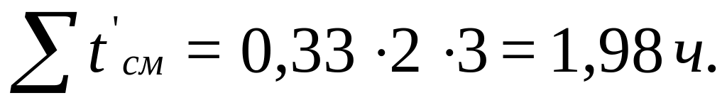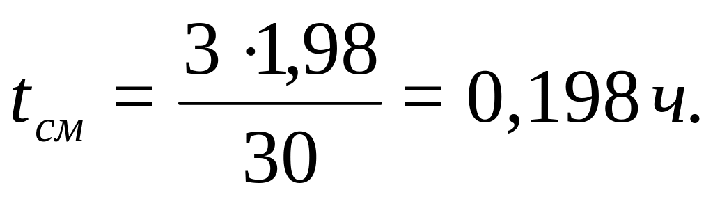 На приемку и сдачу локомотива устанавливается время не более 30 мин на станции основного депо и в пунктах оборота локомотивов, а в пунктах смены локомотивных бригад – не более 20 мин (при этом следует учесть, что работают две бригады – принимающая и сдающая). Расчет дополнительного времени работы бригад рассчитывается по формуле: