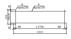 Приймається 18Ø4 Вр-І загальною площею Аs = 2,26 см2 > 2,09 см2 з кроком 150 мм. В поперечному напрямку полку плити армуємо стержнями діаметром 3 мм з кроком 250 мм (конструктивно).