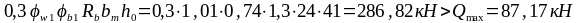 Поперечна сила на краю похилого перерізу, який починається від підпори і має довжину с = 103 см:
