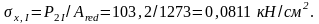 Нормальні напруження на рівні центра ваги зведеного перерізу панелі (тобто при у = 0):