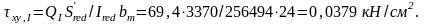 Дотичні напруження в перерізах 1-1 та II-II: