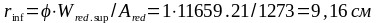 Ексцентриситет зусилля попереднього обтиснення відносно ваги зведеного перерізу: