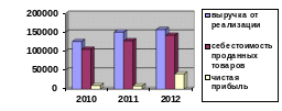 В таблице 8 приведены основные финансовые результаты деятельности ООО «Барис» в течение анализируемого периода за 2010-2012 года.