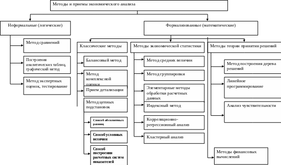 Неформальные (или трудноформализуемые) основаны на описании процедур на логическом уровне, без помощи математических приемов. Большую роль при этом играют опыт, интуиция аналитика. Формализованные методы опираются на предварительно заданные зависимости и правила.