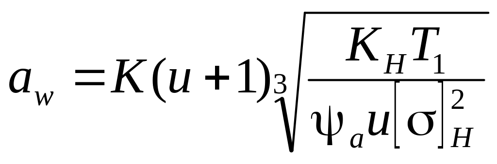 где К – коэффициент, учитывающий свойства и геометрию колес – для прямозубых передач К = 450, для косозубых – К = 410; а = b/aw – коэффициент ширины колеса принимается по стандартному ряду в зависимости от расположения колес относительно опор; Т1 – крутящий момент на шестерне.