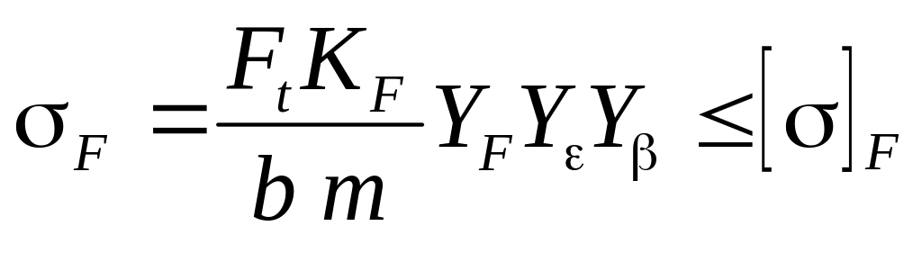 Введя поправочные коэффициенты, получим формулу для расчета изгибной прочности зубьев