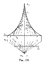 Конические поверхности задаются движением прямой линии l, проходящей через неподвижную точку М, по некоторой направляющей кривой линии а. (рис 128)