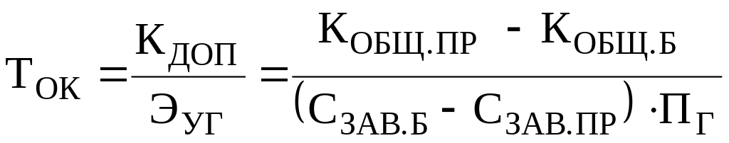 где: Ток - срок окупаемости дополнительных капитальных вложений, лет.