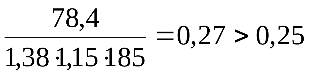 qsw = 78,4 Н/мм > 0,25n Rbt b = 0,25∙1,38∙1,15∙185 = 73,4 Н/мм, следовательно, хомуты учитываются в расчете;