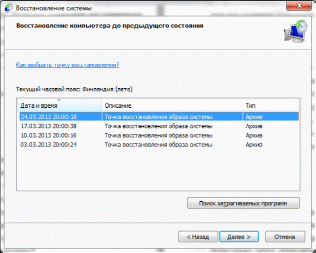 Еще одной утилитой для восстановления утраченной информации является служба восстановления системы. Ее принципиальное отличие от архивации состоит в том, что она сохраняет настройки самой ОС, включая установленные драйвера устройств, профили оборудования и т.д. Для обеспечения такой функциональности Windows регулярно создает контрольные точки восстановления, начиная с первого запуска системы после ее установки на компьютер. Кроме того, создать контрольную точку можно самостоятельно при помощи того же мастера восстановления.