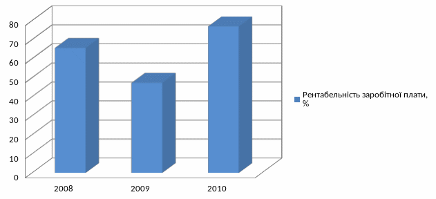 Рисунок 3.8 – Динаміка рентабельності заробітної плати за 2008-2010 роки.