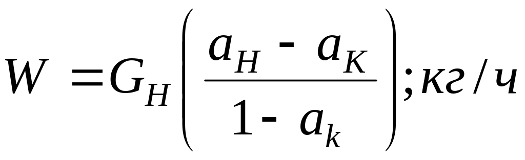 W, кг/ч – массовый расход влаги, удаленный в процессе сушки;