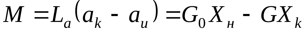 Если G0≈G, или при условии, что концентрация компонента в отходящем потоке Хк будет измеряться в кг/на кг исходного сырья. Уравнение (7.4), (7.5) и (7.6) используются для определения массы адсорбента Lа, загруженного в периодически действующий адсорбер, или для определения удельного расхода адсорбента Lа/G0 (кратность циркуляции адсорбента) на непрерывно действующих установках с движущимся адсорбентом, а также для определения количества вещества М, извлекаемого в процессе адсорбции. В случае периодически действующего адсорбера со стационарным слоем адсорбента количество извлекаемого компонента М из исходной смеси G0 соответствует продолжительности цикла адсорбции за время τ.