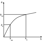 На рисунке 7.5 схематично показано распределение концентраций извлекаемого компонента по высоте слоя при условии приближения системы к состоянию равновесия. На высоте h, последний полностью отработан до концентрации акр, соответствующей состоянию равновесия с исходным газом. По высоте слоя h2 концентрация извлекаемого компонента меняется от акр до аи. Для расчёта материального баланса в адсорбере со стационарным слоем адсорбента величина ак соответствует среднему содержанию извлекаемого компонента во всей массе адсорбента.
