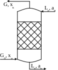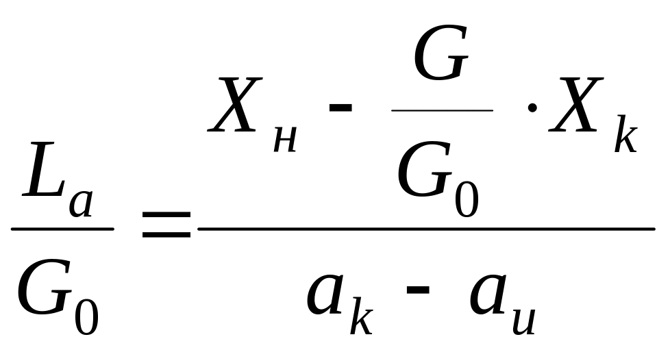 При расчёте адсорбера обычно известны количество исходной смеси G0 и начальная концентрация извлекаемого компонента Хи; величины ак и Хк можно найти при помощи изотермы адсорбции; концентрация аи определяется полнотой десорбции (регенерации). При достижении состояния равновесия в адсорберах адсорбат с концентрацией извлекаемого компонента ак в отходящем адсорбенте будет находиться в равновесии с исходным сырьём, т.е. в этом случае ак = акр, а поток, отходящий из адсорбера, будет в равновесии с исходным адсорбентом, т.е. Хк=Хкр