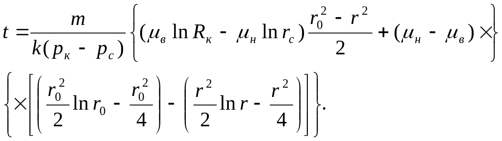 Время радиального перемещения границы от начального положения r = ro (при t = 0) до r находится по формуле