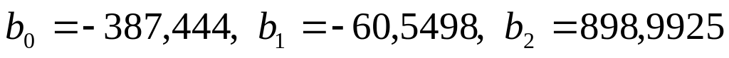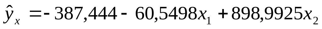 Задача. По данным табл. 2.30 вычислите прогностическое значение объема выпуска валовой продукции Y (тыс. ден. ед.) для производительности труда , равной 200 ден. ед./ч, и среднего процента выполнения нормы , равного 101 %.