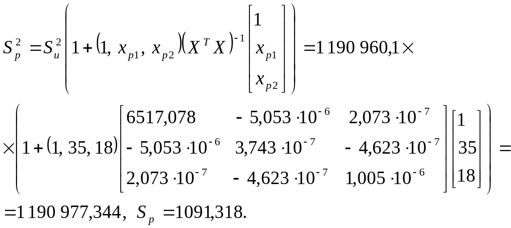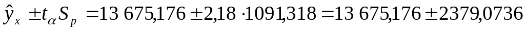 Тогда доверительные интервалы для прогнозов индивидуальных значений Y будут равны