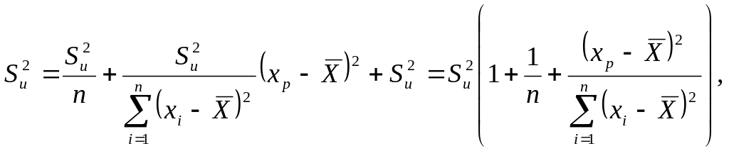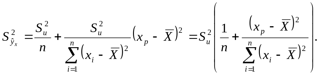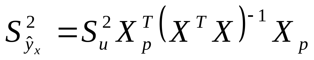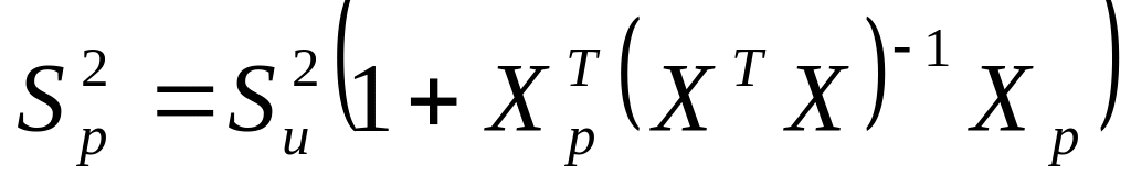 Если же мы хотим определить доверительные интервалы для отдельных значений зависимой переменной, то при определении дисперсии необходимо учитывать еще рассеяние вокруг линии регрессии, т.е. нужно включить величину в суммарную дисперсию: