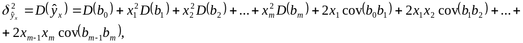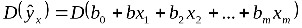 Так как - несмещенные оценки некоторых неизвестных параметров соответствующей взаимосвязи, то - одно из возможных значений прогнозируемой величины при заданных значениях X. Поскольку - случайная величина, то и оценка также случайная и имеет дисперсию. Определим ее значение: