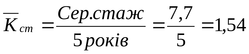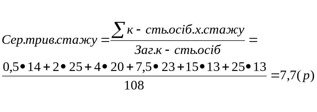 Проаналізувати тривалість стажу роботи на підприємництві на основі колор. а сер. тривалості стажу.