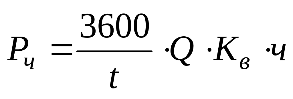 После расчета фактического времени работы оборудования необходимо рассчитать его часовую производительность. Часовая производительность любого агрегата определяется по следующей формуле: