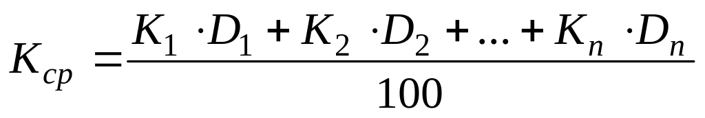Средневзвешенный коэффициент трудности по всему сортаменту рассчитывается по формулам: