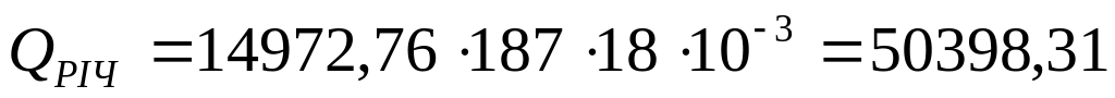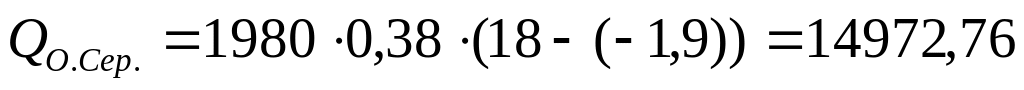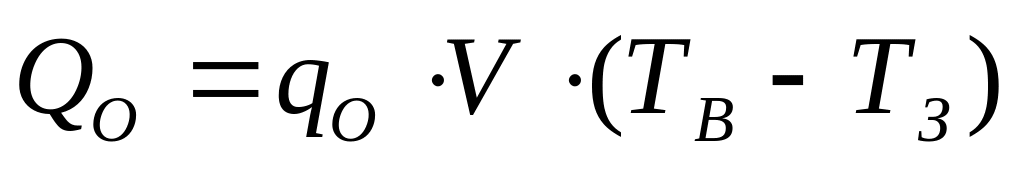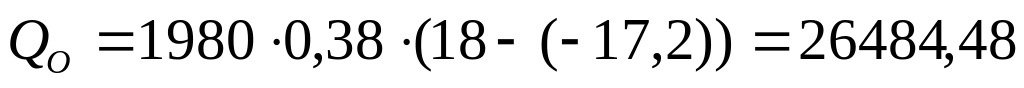 де qо – питома теплова характеристика будинку, ккал/м3Сгод.; для даної споруди qо = 0,38 ккал/м3Сгод.; V – об’єм опалювальної частини споруди, V = 1980 м3; Тв – температура повітря в середині приміщення, С, 18 20С; Тз – температура зовнішнього повітря, С (2.4):